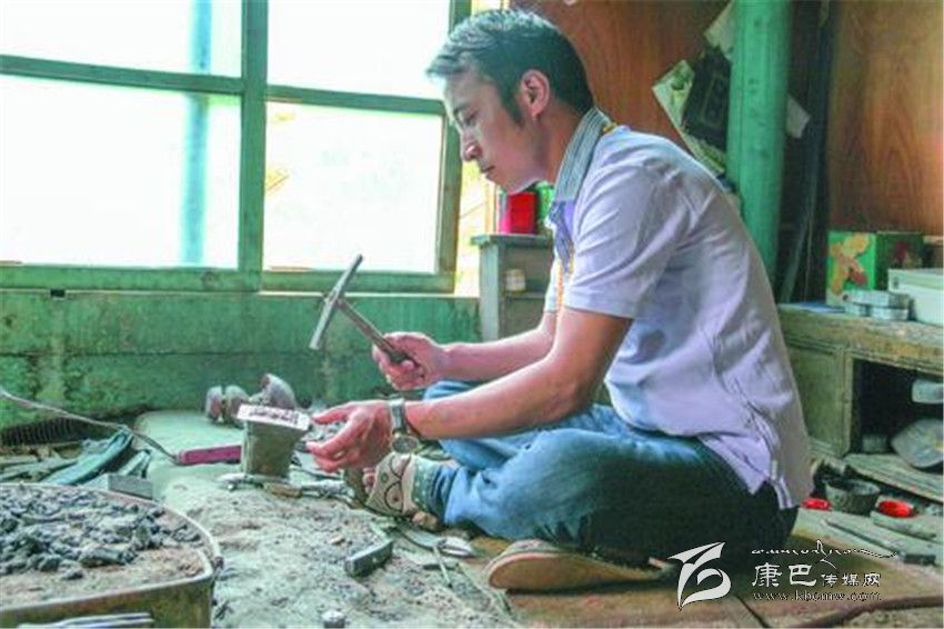 從金沙江支流贈曲河溯流而上,不到半個小時便可到白玉縣河坡鄉(xiāng)。就是這個不起眼的“小地方”,從1300多年前便開始鑄造兵器,曾被譽為“格薩爾王的兵器庫”。2008年,“藏族金屬鍛造技藝”被列入國家級非物質文化遺產名錄,其中便包括以河坡為代表的“藏刀鍛制技藝”。 在記者的想象中,河坡鄉(xiāng)應該是一派作坊連片、熱火朝天、叮叮當當的手工制造場景。然而,當記者來到這里,卻沒有看到這樣的景象。原來,河坡鄉(xiāng)的手工藝生產模式以家庭作坊為主,每家每戶的“工作室”常常設在自家房屋二樓一角。在白玉河坡鄉(xiāng)每個家庭作坊,通常都有自己擅長的專業(yè)產品和特色。例如,手工藝人根秋丹貞擅長制作佛具, 伍金則擅長打制藏刀。其他如村多、麥達、麥學等各個村寨,還分散著諸多以生產馬具、飾品、日常生活用品等為主的家庭作坊。