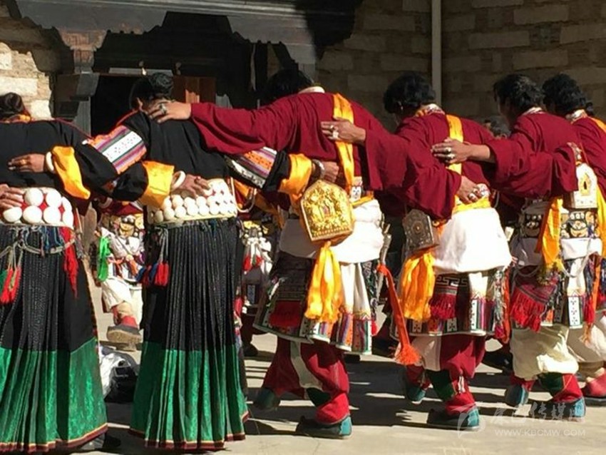鍋莊的節(jié)奏在表演中前后有三次變化,序舞時(shí)只要舞蹈者站好自己的位置,腳步緩慢地交替邁步即可,步伐很輕,力度也不強(qiáng);序舞過后逐漸進(jìn)入慢板舞蹈,最后進(jìn)入最能體現(xiàn)卓舞粗獷奔放特征的快板舞蹈階段,這時(shí),舞蹈者的情緒達(dá)到高潮,場(chǎng)面極為熱烈。