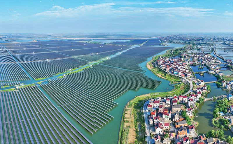 圖為2024年5月20日,安徽省馬鞍山市當(dāng)涂縣大隴鎮(zhèn)的雙潭湖漁光互補(bǔ)光伏電站。 人民圖片 李成林/攝