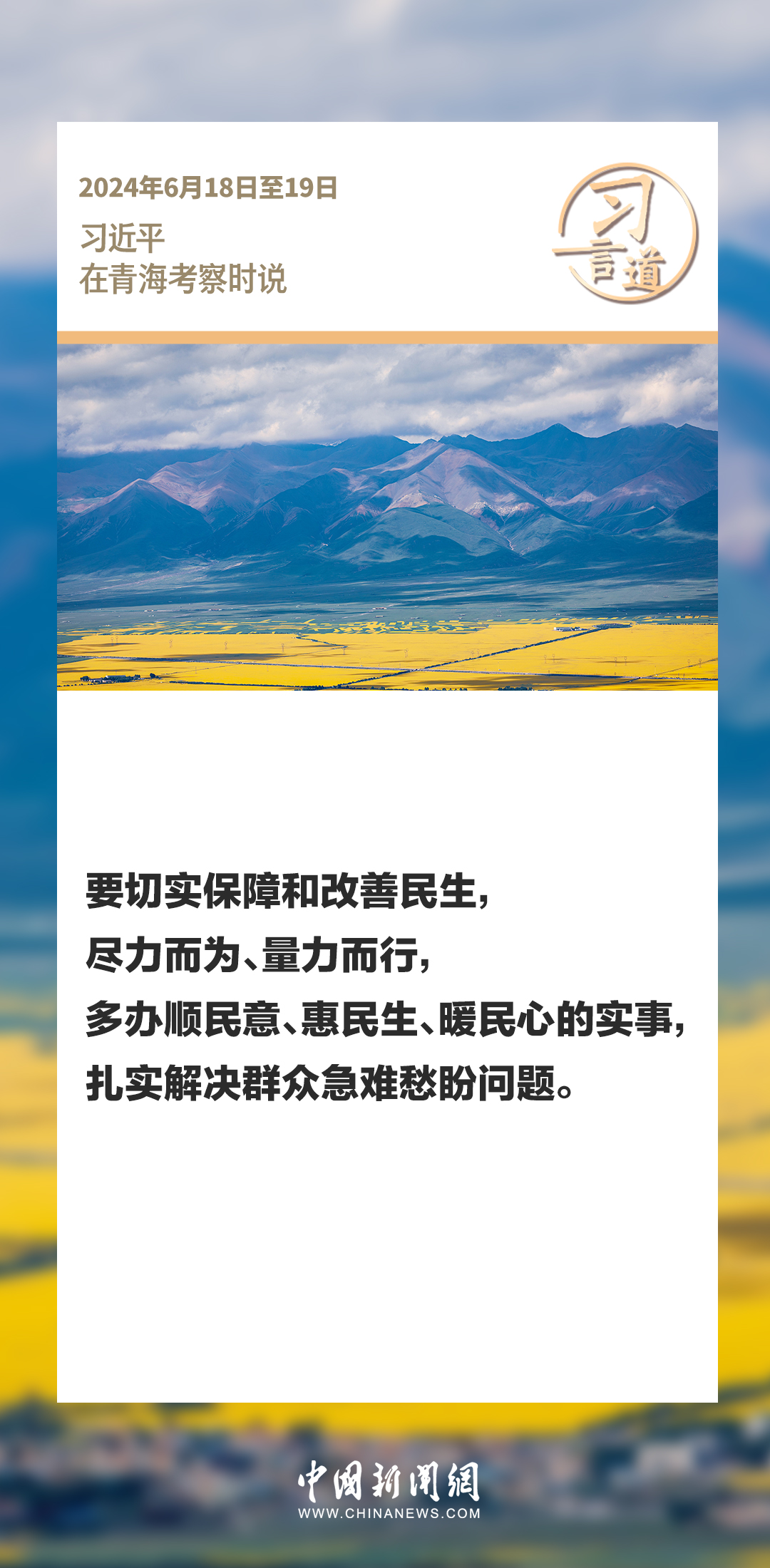 6月18日至19日,中共中央總書記、國家主席、中央軍委主席習近平在青??疾煺{(diào)研。在考察中,習近平指出——