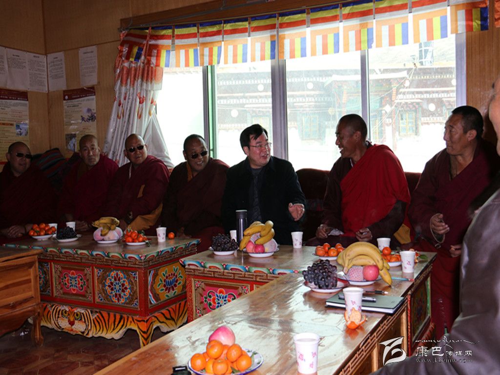 到達爐霍縣城已是中午兩點,僅用十分鐘時間吃過午飯,胡昌升又立即趕往爐霍縣壽靈寺,看望同心同向活動中結(jié)下深厚友誼的“老朋友”。每次到壽靈寺,胡昌升與寺管會成員都有說不完的話,有聊不完的開心事,新年就要到來,大家你一言我一語祝福2015。英巴澤仁說,希望今年“五二三”學(xué)教活動能開展得更好。澤仁扎西說,黨的十八大提出的24字社會主義核心價值觀,字字說在我們的心里,只要把這24字落到實處,偉大中國夢就一定會實現(xiàn)。聽完大家的發(fā)言,胡昌升十分高興,他說,希望2015年全州平安和諧、和和氣氣、和和美美、和和睦睦。