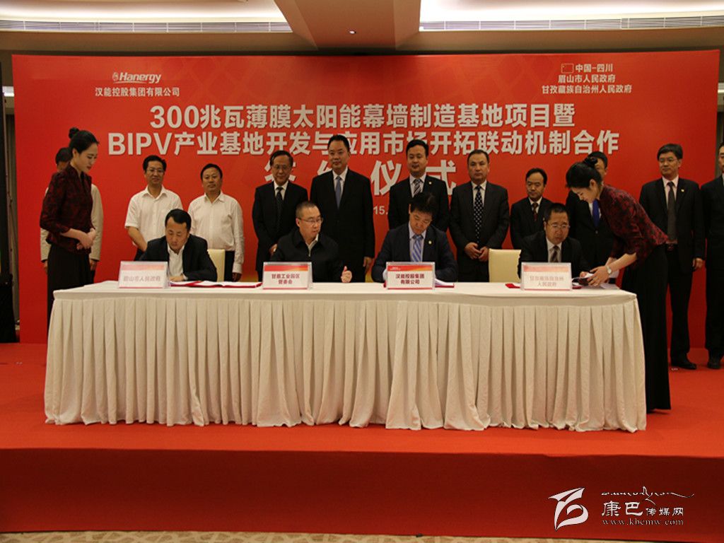 簽約儀式由州委副書記、州政府州長益西達瓦主持。眉山市委副書記、市長宋朝華和漢能控股集團執(zhí)行總裁、漢能光伏產(chǎn)業(yè)集團董事長馮電波出席簽約儀式并致辭。州委常委、州政府常務副州長陳忠義代表州政府簽約。眉山市委常委宣迅,市委常委、甘眉工業(yè)園區(qū)黨工委第一書記王光彩,市政府副市長唐宏以及漢能控股集團相關負責人、兩市州相關部門和甘眉工業(yè)園區(qū)負責人參加簽約儀式。