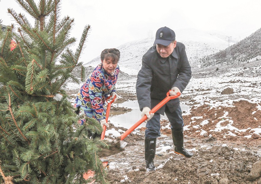 在海拔3800米的呷巴鄉(xiāng)植樹點(diǎn),劉成鳴、向秋、包建華與其他州領(lǐng)導(dǎo)一道拿起鐵鍬與機(jī)關(guān)干部、部隊(duì)官兵和學(xué)生們一起植樹。挖坑、扶苗、填土、澆水……大家合力栽下楊柳、高山柳等一棵棵適合當(dāng)?shù)厣L的樹苗。植樹過程中,劉成鳴還不時詢問本次義務(wù)植樹活動的栽種面積、樹木品種及成活率等情況。在與同學(xué)們一起植樹時,劉成鳴勉勵同學(xué)們從小樹立保護(hù)環(huán)境、愛綠護(hù)綠意識,多做有意義的事,用勤勞的雙手建設(shè)美好家園,要像今天種下的一棵棵樹苗一樣,健康茁壯成長。