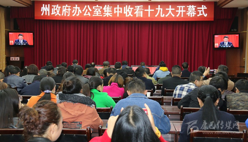 中國共產黨第十九次全國代表大會18日上午在人民大會堂開幕。習近平代表第十八屆中央委員會向大會作了題為《決勝全面建成小康社會 奪取新時代中國特色社會主義偉大勝利》的報告?!安煌跣?,牢記使命,高舉中國特色社會主義偉大旗幟,決勝全面建成小康社會,奪取新時代中國特色社會主義偉大勝利,為實現(xiàn)中華民族偉大復興的中國夢不懈奮斗?!鄙衔?/span>9時,我州機關單位、學校、農村牧區(qū)、企事業(yè)單位、駐軍等干部職工和農牧民群眾圍坐在電視機旁,聚精會神聆聽十九大報告,觸摸獲得感,說說心里話。藍圖催人奮進,成就鼓舞人心,全州各族人民表示,要在黨的堅強領導下,擼起袖子加油干,與全國人民一道豪邁步入小康社會。