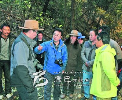 10日早上8點(diǎn)30分,益西達(dá)瓦又率隊(duì)騎馬從卡斯村進(jìn)入卡斯谷。一進(jìn)谷口,大家就被谷口小巧別致的巖溶鈣化彩池、千年古樹(shù)沖天柏所震撼。據(jù)說(shuō)谷口沿線還有古冰川的遺跡,是雪峰、冰川、海子、瀑布、溫泉的共融體,國(guó)家二類(lèi)保護(hù)植物干香柏,藥用植物蟲(chóng)草、貝母、黃芪、大黃等也非常豐富。面對(duì)谷內(nèi)五彩繽紛的山色、野性激蕩的溪流、挺拔粗壯的古樹(shù)、枝椏橫溢的叢林、結(jié)實(shí)樸拙的木橋、壁立千仞的懸崖,考察隊(duì)員不禁驚呼:“這不就是阿凡達(dá)的故鄉(xiāng)嗎?”益西達(dá)瓦時(shí)而騎馬,時(shí)而步行,一邊察看景致,一邊興高采烈的與同行考察隊(duì)員和縣鄉(xiāng)村干部交談。景區(qū)怎樣規(guī)劃?怎樣建設(shè)?怎樣宣傳?景區(qū)取什么名字?為景區(qū)賦予什么樣的文化靈魂?哪里修棧道?哪里架索道?哪里修觀光電梯?都一一指導(dǎo),清晰地勾畫(huà)了卡斯谷開(kāi)發(fā)藍(lán)圖。