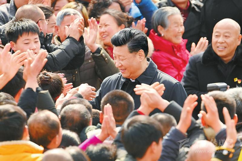 2月12日上午,習(xí)近平總書記在成都市郫都區(qū)戰(zhàn)旗村考察時(shí)同村民們親切交流。 新華社記者 張鐸 攝(資料圖片)