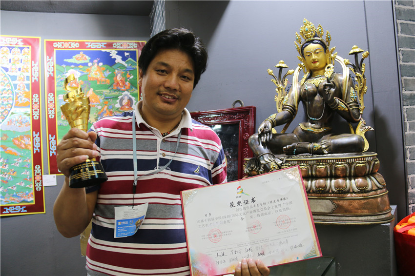 本網(wǎng)訊(記者 宋志勇 文/圖)5月14日,歷時5天的2018年第十四屆中國(深圳)國際文化產業(yè)博覽交易會(以下簡稱深圳文博會)圓滿落幕。我州憑借花色青銅《綠度母佛像》作品摘得“中國工藝美術文化創(chuàng)意獎”金獎,成為本屆文博會大眾關注的焦點。