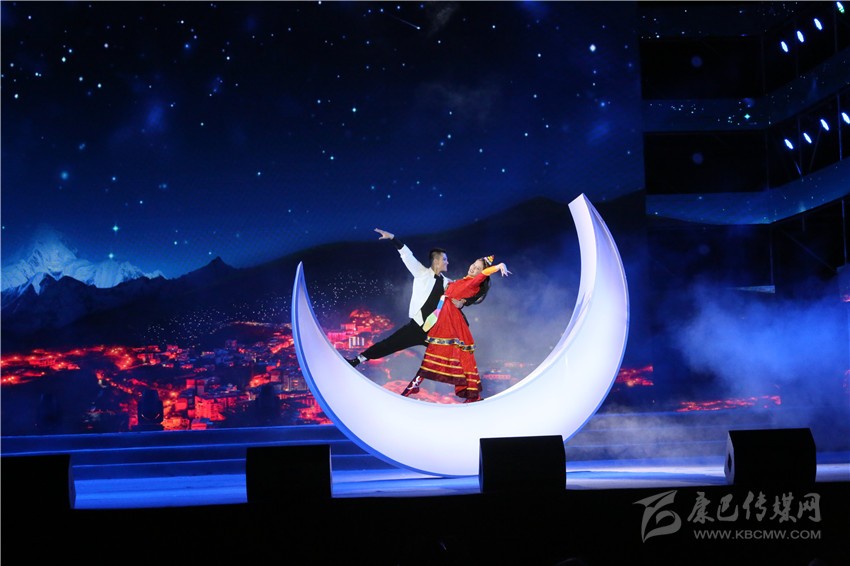 說(shuō)唱《康定情歌》并配以街舞是本劇目對(duì)《康定情歌》演繹形式的大膽創(chuàng)新。演出中,幾名穿著時(shí)尚、朝氣蓬勃的青年,用歡快的節(jié)奏、靈活的動(dòng)作,展現(xiàn)了《康定情歌》的深厚內(nèi)涵,也宣傳了康定的城市特質(zhì)。獨(dú)具一格的表演讓人耳目一新、深受感染,體育場(chǎng)內(nèi)歡呼不斷、吶喊震天,觀眾的熱情與演員的激情互相激蕩,久久不絕。