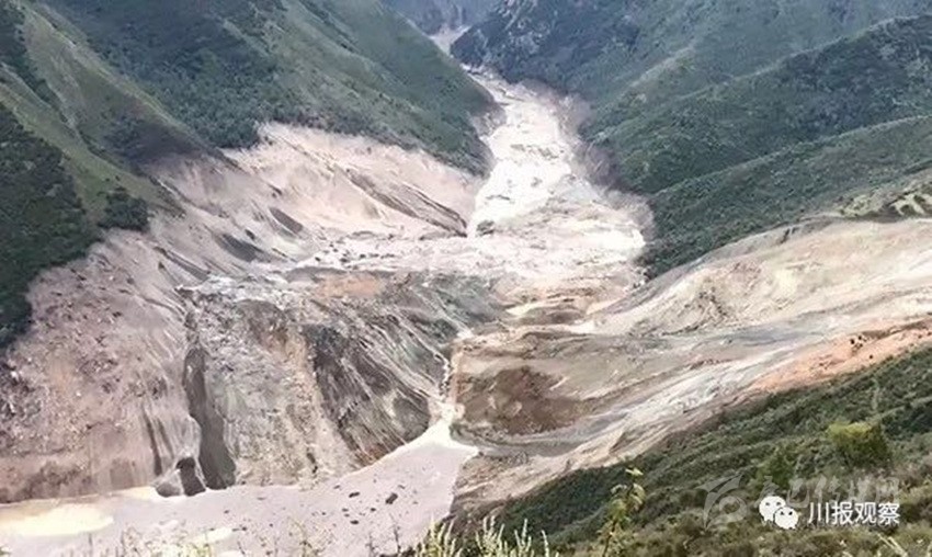 另據(jù)四川省防指和四川省水利廳工作組反饋:堰塞湖所在江段長約10.6公里,河谷為“V”形峽谷,兩側(cè)岸坡坡度20~60°,河谷結(jié)構(gòu)為斜向谷。河道上游彎曲、下游稍順直,水流急,局部稍緩。初步統(tǒng)計,該段江段共有滑坡10處,崩塌3處,泥石流溝8條。其中有2處大型滑坡,即則學滑坡和仁達滑坡。