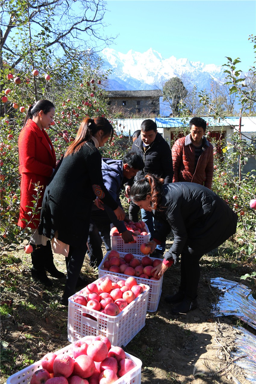 看著筐里剛摘下的紅彤彤的蘋果,村民們臉上樂開了花。