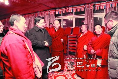 火災發(fā)生后第一時間趕到現(xiàn)場的省委統(tǒng)戰(zhàn)部、省宗教局工作組領導以及州委副書記、政法委書記向秋,副州長唐強,州民政局、州住房建設局和色達縣主要領導參加了慰問。