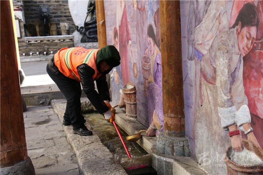 每逢節(jié)假日,是環(huán)衛(wèi)工人最忙最累的時(shí)候。2月5日下午,康定強(qiáng)盛公司清洗組組長(zhǎng)楊曉康帶著全組工作人員來(lái)到康定市水井子,打掃整個(gè)水井子的環(huán)境衛(wèi)生?!俺跻弧畵岊^水’是多年來(lái)康定市民的過(guò)年習(xí)俗,我們現(xiàn)在把這里打掃干凈,讓市民們?cè)凇畵岊^水’時(shí)有干凈整潔的環(huán)境?!睏顣钥蹈嬖V記者。