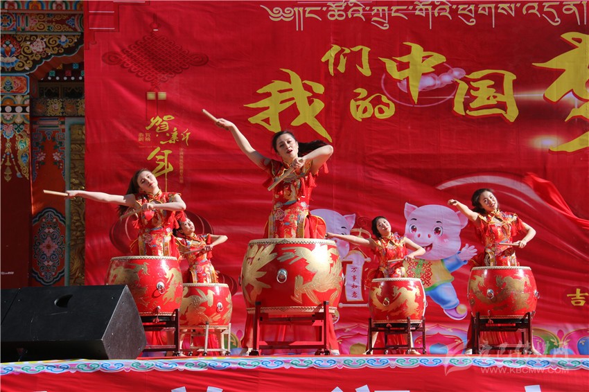 活動(dòng)中,來自瀘定的20多名少年也熱情表演了舞蹈《鼓動(dòng)新春》。小朋友們穿著火紅的盛裝,挎著精美的腰鼓,在舞臺(tái)上奔跑跳躍,熱情敲打,不僅敲出了喜悅,跳出了吉祥,也展示了甘孜人民生活越來越美好、精神越來越振奮的良好精神面貌。