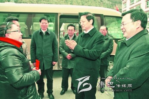 王懷臣在康定縣爐城鎮(zhèn)清泉村慰問“三老干部”駱志珍