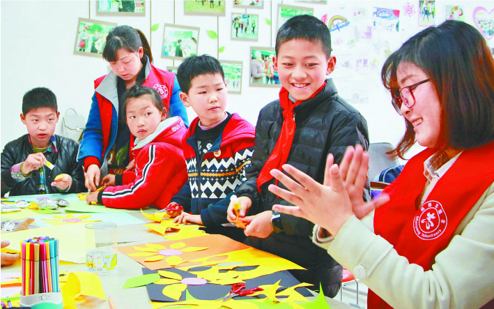 綿陽朝陽街道劍門路西段社區(qū)探索開設(shè)公益“五點半學?!保蠈W校、家庭、社區(qū)三方資源,為孩子提供學習輔導(dǎo)。 陳冬冬 攝(視覺四川 四川日報資料圖片)