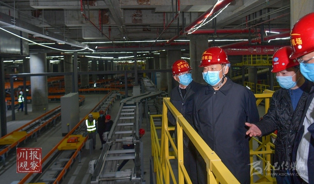 2月27日,彭清華書記到成都天府國際機場T1航站樓行李系統(tǒng)施工區(qū)域調(diào)研。