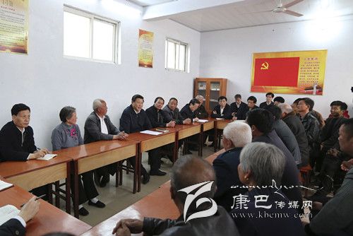 3月17日,習(xí)近平在東壩頭鄉(xiāng)張莊村村委會(huì)與干部群眾座談,聽取意見和建議。