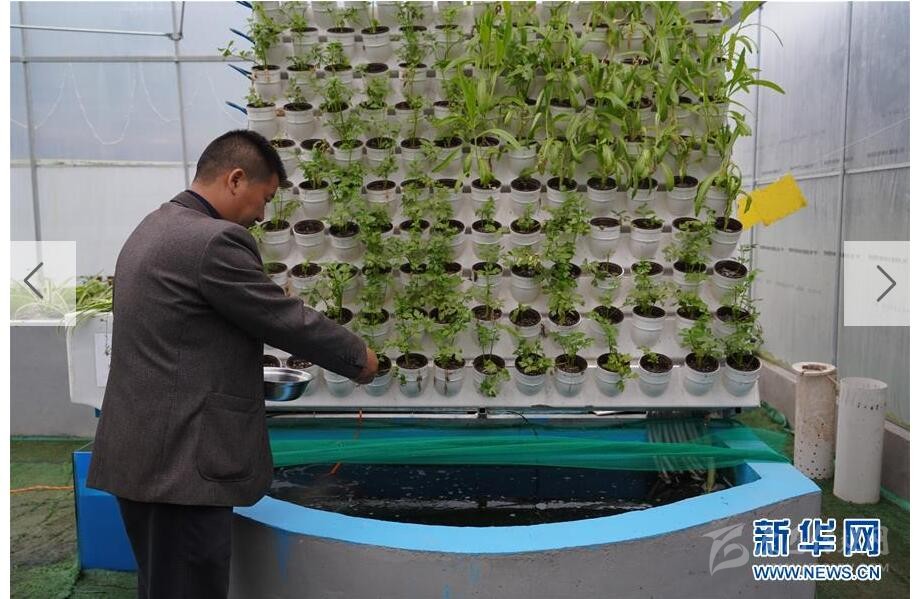 4月19日,在蘆山縣飛仙關鎮(zhèn)禾茂農(nóng)業(yè)園區(qū),工作人員給魚喂食。這里采取“魚菜共生”的模式,養(yǎng)魚和種菜的水通過過濾系統(tǒng)實現(xiàn)循環(huán)利用。