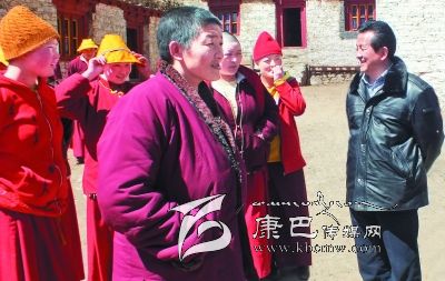 在雅江縣委、縣人大常委會(huì)主要領(lǐng)導(dǎo)及統(tǒng)戰(zhàn)、宗教部門的陪同下,李康來到距縣城90多公里的雅江縣紅龍鄉(xiāng)158k覺姆寺,同寺管會(huì)成員和部分僧尼進(jìn)行座談。他詳細(xì)了解寺廟的基本情況,仔細(xì)詢問僧尼的生產(chǎn)生活和寺廟佛事活動(dòng)開展情況,認(rèn)真傾聽僧尼的反映和訴求,對(duì)僧尼提出的困難和問題詳細(xì)記錄,認(rèn)真答復(fù),耐心細(xì)致地講解宣傳黨的民族宗教和惠寺惠僧政策。座談會(huì)上,李康主任簡(jiǎn)短的開場(chǎng)白很快拉近了大家的距離,他說,這次專門到寺廟的目的就是看望大家,建立聯(lián)系,了解情況,收集問題,希望大家暢所欲言,互相溝通,加強(qiáng)交流,增進(jìn)了解,共同推進(jìn)寺廟的健康有序發(fā)展。當(dāng)他了解到該寺的水、電問題在縣委、政府的關(guān)心重視下,今年即將得到解決時(shí),他說,州、縣黨委、政府歷來十分關(guān)心寺廟的基礎(chǔ)設(shè)施建設(shè)和廣大僧尼的生產(chǎn)生活、健康醫(yī)療等問題,寺廟的水電、道路、通信等基礎(chǔ)設(shè)施始終得到了黨委、政府的關(guān)心支持,僧尼的醫(yī)保、養(yǎng)老和最低生活保障等生活保障措施正在全州寺廟全面覆蓋。對(duì)寺廟的其他困難和問題,州、縣將積極協(xié)調(diào),盡快解決。他強(qiáng)調(diào)指出,158k覺姆寺近年來通過縣委、政府綜合施策,強(qiáng)化教育,規(guī)范管理,寺廟整體情況良好,步入了依法管理的良性軌道。他講到,我們黨的民族宗教政策是長(zhǎng)期的、一貫的,寺廟作為基本社會(huì)單元,僧尼作為普通公民和基本群眾,要自覺接受當(dāng)?shù)攸h委、政府依法管理,維護(hù)祖國統(tǒng)一、民族團(tuán)結(jié)和法制尊嚴(yán),推動(dòng)宗教與社會(huì)主義社會(huì)相適應(yīng),與現(xiàn)代文明進(jìn)程相協(xié)調(diào),積極投入全州發(fā)展中來,共同建設(shè)好我們的和諧幸福家園。任何寺廟只要服從當(dāng)?shù)攸h委、政府的管理,認(rèn)真貫徹落實(shí)好藏傳佛教的各項(xiàng)管理規(guī)定,真正發(fā)揮好宗教的正面積極作用,寺廟才會(huì)得到黨委、政府更多的關(guān)心支持,才會(huì)得到更好的健康發(fā)展。他希望158k覺姆寺要依法加強(qiáng)宗教事務(wù)的管理,深入貫徹落實(shí)《甘孜州藏傳佛教事務(wù)條例實(shí)施細(xì)則》,促進(jìn)依法治寺、規(guī)范管寺,為維護(hù)正常宗教秩序、服務(wù)經(jīng)濟(jì)社會(huì)發(fā)展、促進(jìn)社會(huì)和諧穩(wěn)定做出積極貢獻(xiàn)。