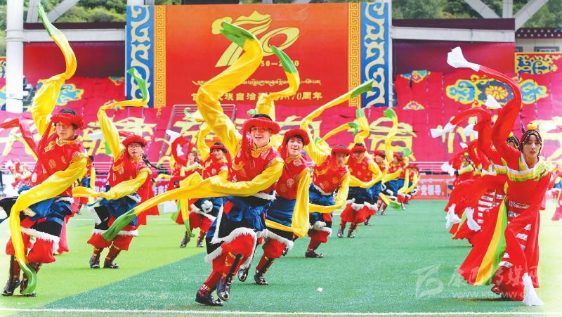 9月17日,甘孜藏族自治州成立70周年慶祝大會(huì)在康定舉行。各族群眾表演以“圣潔甘孜筑夢(mèng)新時(shí)代”為主題的文藝節(jié)目。四川日?qǐng)?bào)全媒體記者 歐陽杰 攝