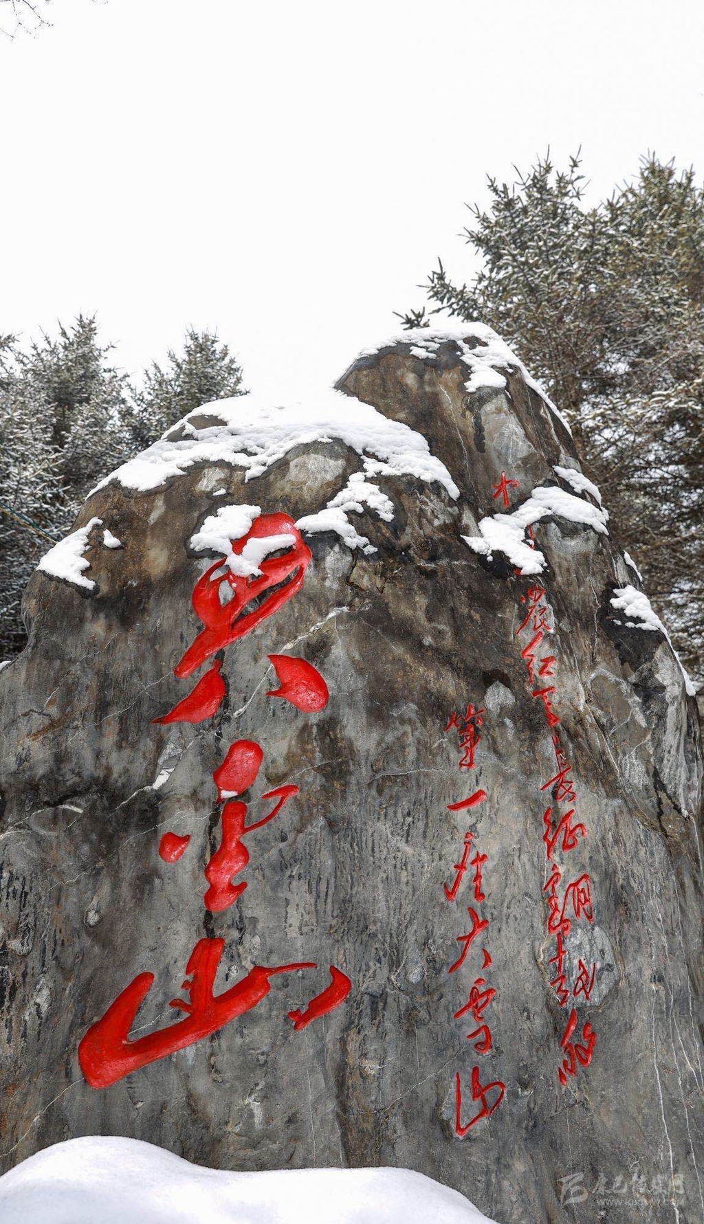 紅軍長(zhǎng)征翻越夾金山紀(jì)念地被白雪覆蓋的石碑