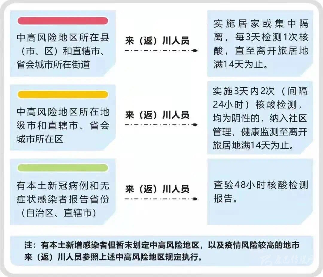 倡導(dǎo)公眾從外地來(lái)(返)川后,第一時(shí)間進(jìn)行一次核酸檢測(cè)。保持簡(jiǎn)約健康的生活方式,不聚集、少串門。