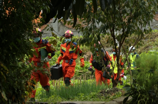 演練中,參演隊(duì)伍全要素、全流程地模擬指揮部搭建、災(zāi)情接報(bào)、會(huì)商研判、人員搜救安置、滑坡崩塌處置等過程,包含了次生地質(zhì)災(zāi)害處置全過程。