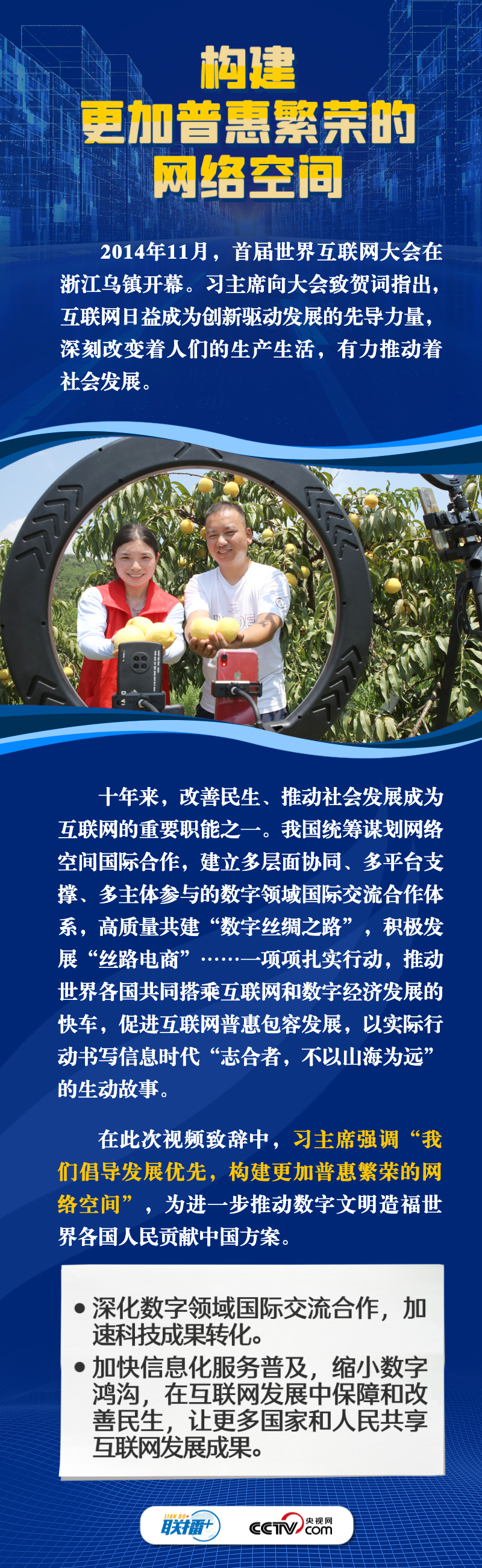 聯(lián)播+11月8日,習(xí)近平主席向2023年世界互聯(lián)網(wǎng)大會烏鎮(zhèn)峰會開幕式發(fā)表視頻致辭。自2014年首屆世界互聯(lián)網(wǎng)大會舉辦以來,習(xí)主席通過發(fā)表主旨演講、視頻致辭或者向大會發(fā)來賀信等不同形式關(guān)心大會的舉辦,始終倡導(dǎo)構(gòu)建網(wǎng)絡(luò)空間命運(yùn)共同體,得到國際社會廣泛認(rèn)同和積極響應(yīng)。