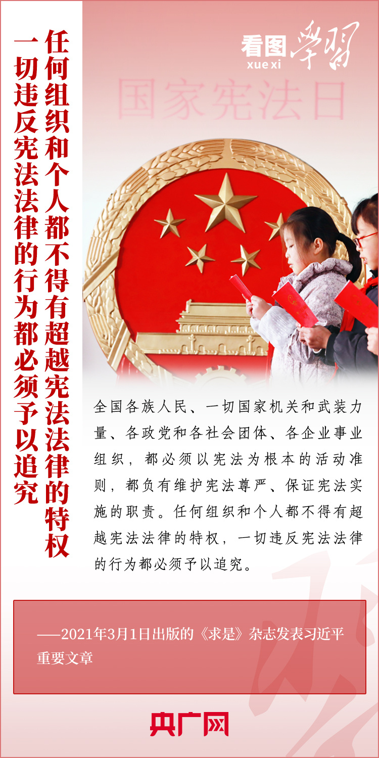 憲法是國家的根本法,是黨和人民意志的集中體現(xiàn)。尊崇憲法、學(xué)習(xí)憲法、遵守憲法、維護(hù)憲法、運(yùn)用憲法,是每個(gè)公民的義務(wù)。在第十個(gè)國家憲法日(12月4日)來臨之際,《看圖學(xué)習(xí)》欄目為您梳理習(xí)近平總書記關(guān)于憲法的重要論述。一起來學(xué)習(xí)!