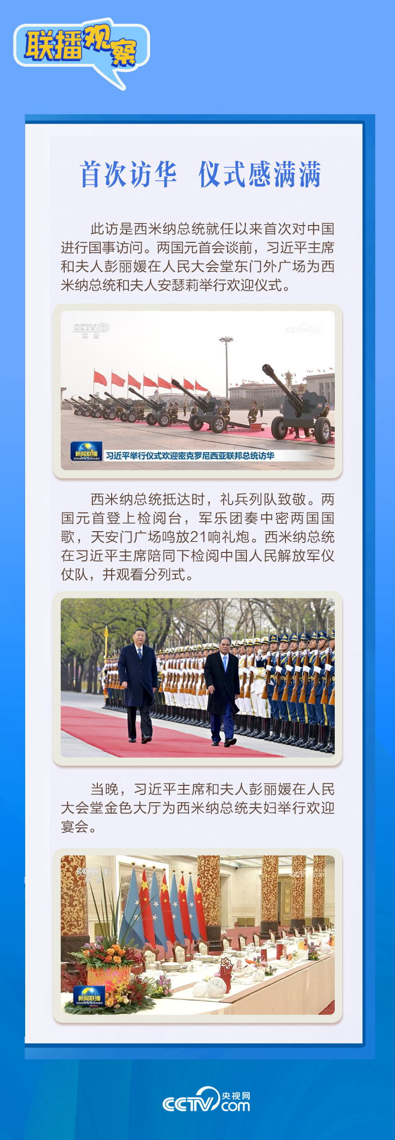 聯(lián)播+應(yīng)習(xí)近平主席邀請,密克羅尼西亞聯(lián)邦總統(tǒng)韋斯利·西米納于4月5日至12日對中國進(jìn)行國事訪問。4月9日下午,習(xí)近平主席在北京人民大會堂同西米納總統(tǒng)舉行會談,就雙邊關(guān)系發(fā)展及共同關(guān)心的問題深入交換意見。雙方會談哪些細(xì)節(jié)值得關(guān)注?央視網(wǎng)《聯(lián)播觀察》帶您了解。