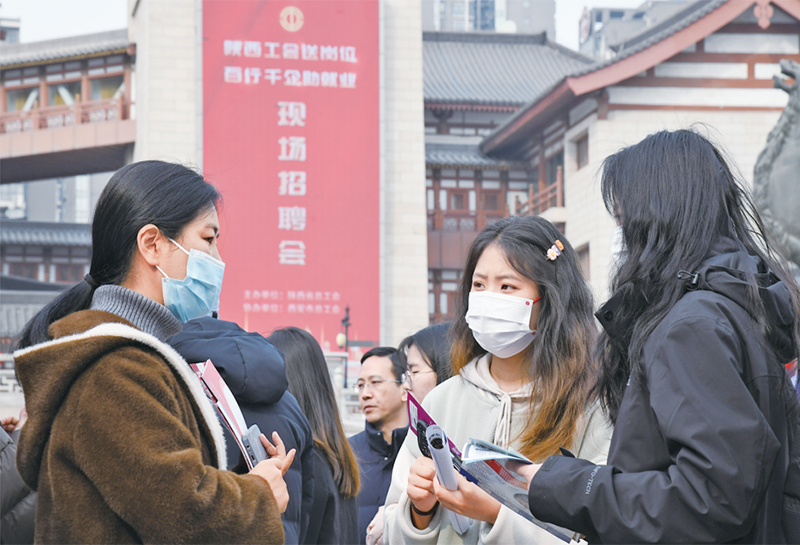 2024年3月6日,由陜西省總工會(huì)舉辦的2024年陜西工會(huì)“春送崗位”就業(yè)服務(wù)月啟動(dòng)儀式在西安舉行。與啟動(dòng)儀式同期舉辦的現(xiàn)場(chǎng)招聘會(huì)吸引約200家用人單位參加,提供崗位超過(guò)5000個(gè)。圖為當(dāng)日求職者在現(xiàn)場(chǎng)招聘會(huì)上與企業(yè)工作人員交流。 新華社記者 張博文/攝
