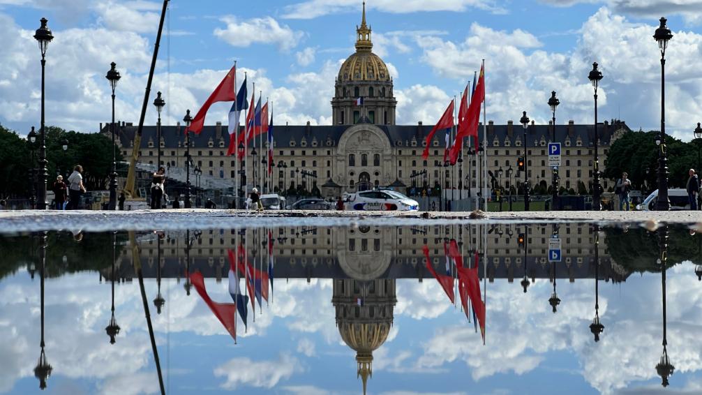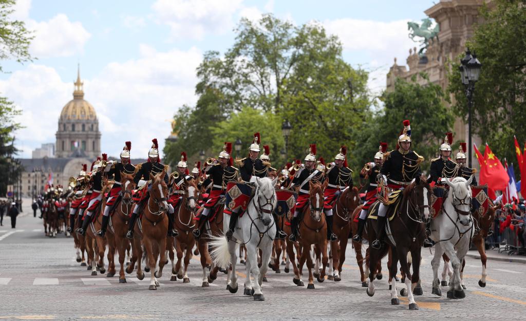 ??五月的巴黎,風(fēng)和景明。塞納河畔,榮軍院金色穹頂熠熠生輝,五星紅旗和藍(lán)白紅三色旗迎風(fēng)飄揚。