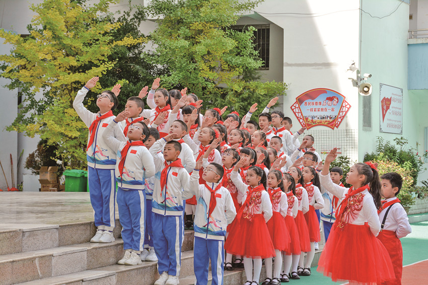 活躍提升組織生活也是少先隊(duì)工作強(qiáng)基固本的重要環(huán)節(jié)。通過健全少先隊(duì)階梯式成長激勵(lì)體系;全面實(shí)施分批入隊(duì)、分段教育、分級(jí)激勵(lì)和推優(yōu)入團(tuán);依托“紅領(lǐng)巾獎(jiǎng)?wù)隆备采w隊(duì)中教育全過程等措施,全市14至15周歲新入團(tuán)團(tuán)員經(jīng)由少先隊(duì)組織推優(yōu)入團(tuán)達(dá)100%。此外,全覆蓋開展“開學(xué)第一堂隊(duì)課”、主題隊(duì)課活動(dòng),規(guī)范舉行入隊(duì)儀式等,讓少先隊(duì)員組織意識(shí)和光榮感全面增強(qiáng)。