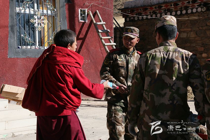 喇嘛向武警官兵表示感謝。