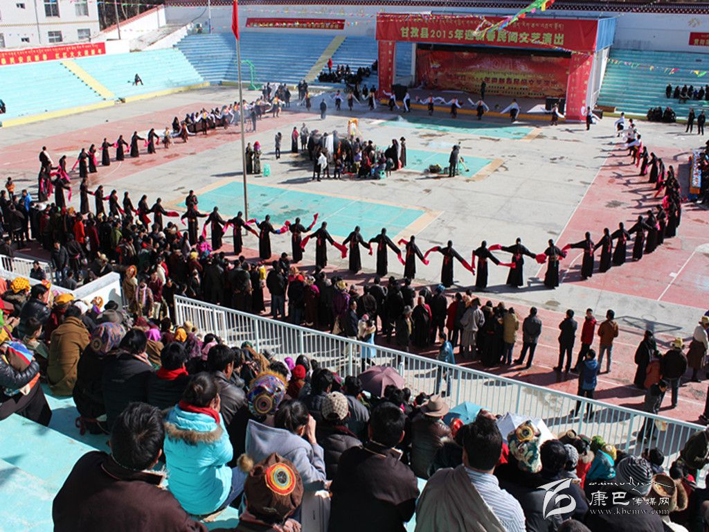 2月21日和22日,甘孜縣中心體育廣場彩旗獵獵,歌舞歡騰,由中共甘孜縣委、縣人民政府主辦,縣委宣傳部、縣文旅廣體局承辦的2015年新春民間文藝演出在這里隆重舉行,來自團結(jié)村和瓦巴村的藏族群眾穿上節(jié)日的盛裝,跳起歡快的鍋莊弦子,共慶新年。