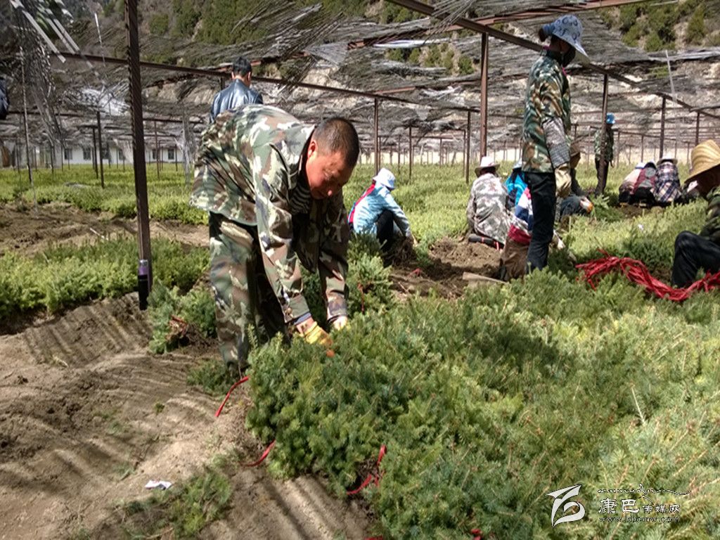 吳林與同事們?cè)诹謭?chǎng)培植樹(shù)苗。