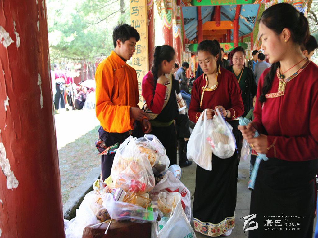 本網(wǎng)訊(益西貢布文/圖)5月25日,是康定的傳統(tǒng)節(jié)日——“四月八”跑馬山國(guó)際轉(zhuǎn)山會(huì)。這一天,數(shù)以萬(wàn)計(jì)的游客從四面八方慕名而來(lái)、云集康定,人們上跑馬山拜佛,參加轉(zhuǎn)山會(huì)各項(xiàng)活動(dòng),以祈豐年。由于游人太多,被四處丟棄的垃圾給跑馬山的環(huán)境造成了一定壓力。在熙熙攘攘的在人群中,記者發(fā)現(xiàn)有不少學(xué)生模樣的年輕姑娘和小伙子手上捧著環(huán)保垃圾袋,穿梭于人群中忙著撿垃圾,而后又放到指定地點(diǎn)。在交談中記者了解到,他們是來(lái)自四川省藏文學(xué)校的學(xué)生,慕名前來(lái)參加跑馬山轉(zhuǎn)山會(huì)的同時(shí),自愿發(fā)起義務(wù)撿拾垃圾行動(dòng)。他們的這一行動(dòng)得到了游客的贊許,成為了節(jié)日里一道最美的風(fēng)景。圖為學(xué)生正在收集垃圾。