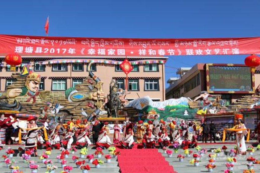 本網(wǎng)訊(葉強(qiáng)平 唐鵬飛 文/圖)1月29日,農(nóng)歷大年初二,理塘縣格薩爾廣場上彩旗飄揚(yáng)、歌聲陣陣、熱鬧非凡,一場帶有濃郁藏區(qū)特色的理塘縣2017年“幸福家園?祥和春節(jié)”聯(lián)歡文藝匯演,吸引來自縣城及周邊鄉(xiāng)鎮(zhèn)3000余農(nóng)牧民群眾前來觀看。