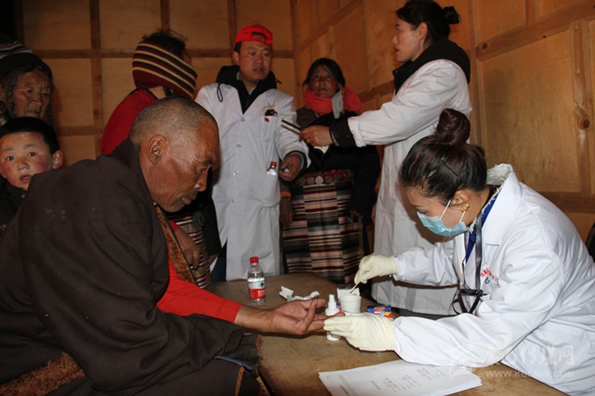 本網(wǎng)訊(葉強平)4月11日,理塘縣衛(wèi)計局組織19名醫(yī)務人員,深入離縣城60多公里、海拔4200多米的村戈鄉(xiāng)拖仁村,為90多名牧民群眾進行了體重、血壓、B超、心電圖、婦女病篩查等健康檢查,還為群眾建立了健康檔案。圖為醫(yī)務人員在為牧民群眾測血糖。