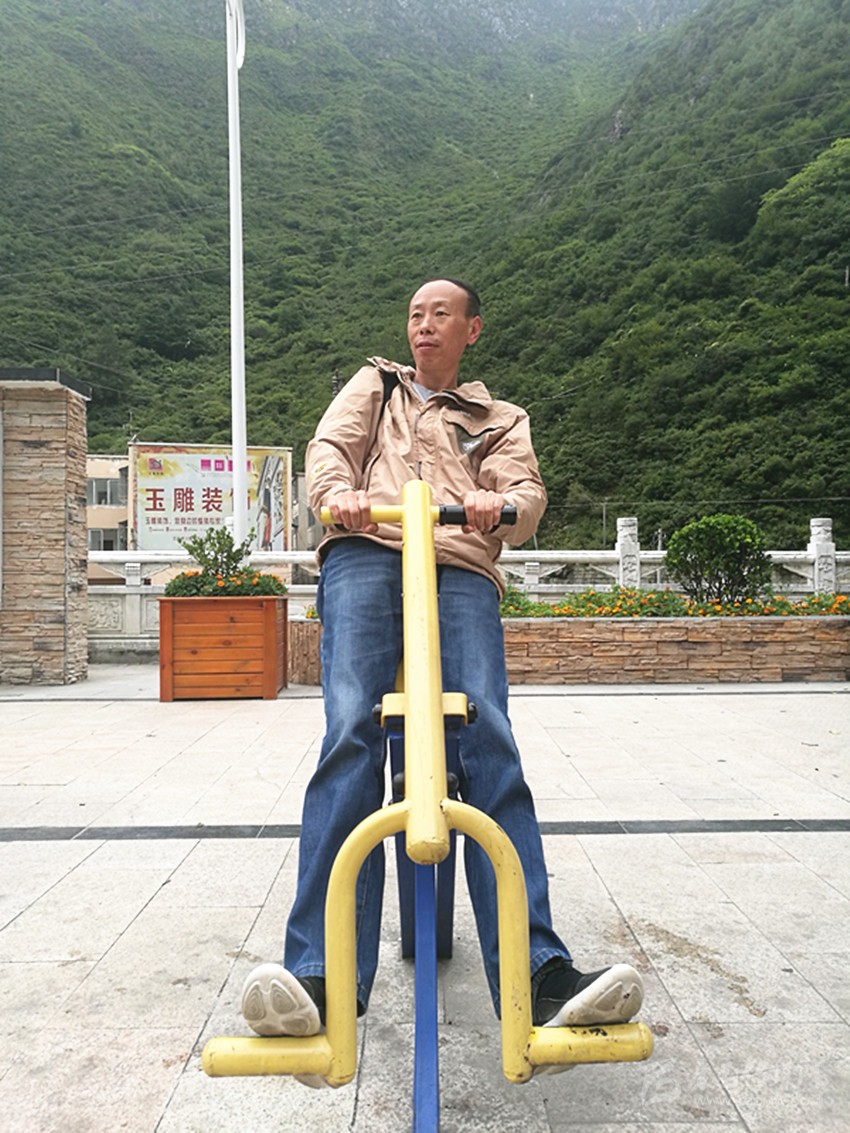 今年57歲的多吉,來自德格,前段時間做完體檢后,就一直住在康定。在這期間,他每天早上都會散步半小時到健身器材處鍛煉,當記者問他對是否對全民健身有了解時,他說:“全民健身就是要大家都運動起來,所有人都能擁有一個好身體?,F(xiàn)在很多人上班工作忙,下班應(yīng)酬、上網(wǎng)忙,嚴重缺乏鍛煉;像我一樣上了年齡的就更要鍛煉,這不僅是對自己的身體負責(zé),更是對兒女負責(zé)。”據(jù)了解,多吉在老家德格,還有一個鍛煉基地——印經(jīng)院,每天在那里轉(zhuǎn)經(jīng)不僅讓他的身體得到鍛煉,更讓他的心靈得到沉淀。