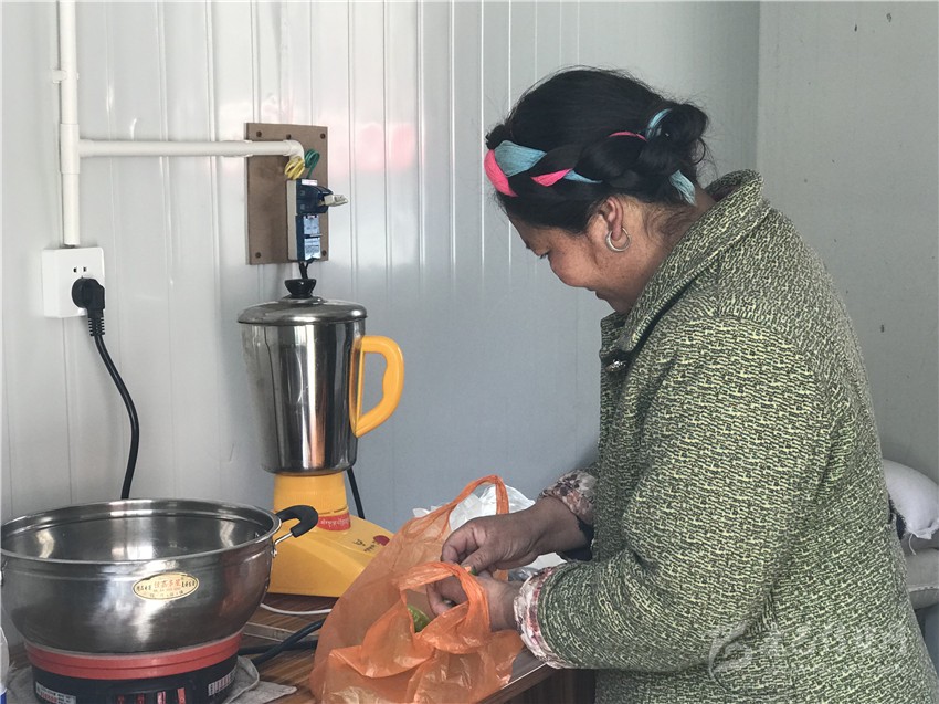 仁青卓瑪一家共四口人,分得農戶四人房?!拔覜]想過板房條件可以這么好,有電有水,還有單獨干凈的廁所,對面就是洗澡的地方,在有些地方甚至比以前住的房屋更便利?!彼呎f邊用抹布擦著灶臺上的油漬,“這里也是家啊,還是要收拾得干干凈凈的,新家新氣象嘛?!敝钡焦P者離開,卓瑪還在自家的板房里忙碌著。