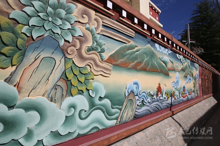 當(dāng)筆者一行走在巴塘縣城,墻體繪畫上“巴塘八景”躍然于上,“巴山積雪”“柳林較射”“桃園賞花”“板橋垂釣”“古桑抱石”“溫泉沐浴”“暖石回陽”“老柳夾槐”色彩豐富、構(gòu)思精巧,平淡無奇的墻面因?yàn)橐环r活的繪畫變得生活,一面墻一幅畫一個(gè)故事。街頭巷尾,十字路口的“大鵬蓮花燈”“九眼天珠燈”“走馬燈”高高懸掛展示巴塘風(fēng)貌。以“茶馬古道”為主題打造的“最美古鎮(zhèn)”,悠悠古韻講巴塘故事,古色古香顯巴塘韻味……