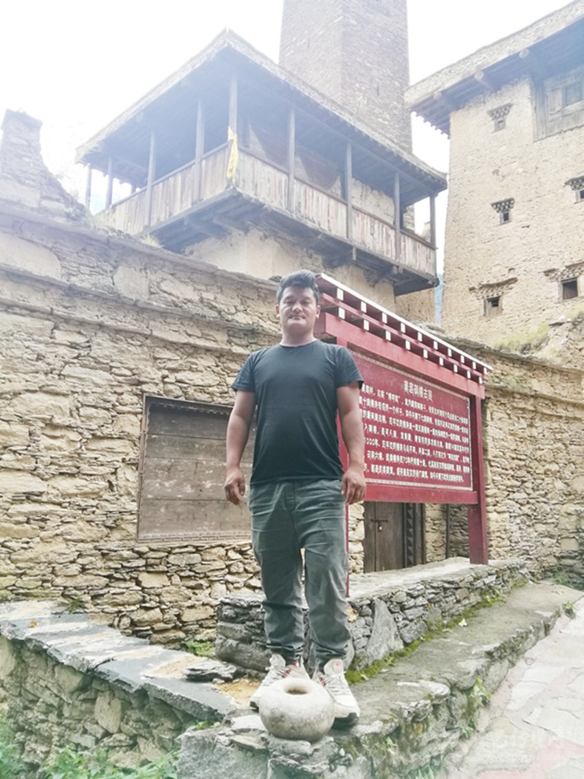 如今,莫洛村只剩下七座碉樓,其中包括殘碉和古樓。在該村1組28號,一座古樓和一座四角碉筑為一體的家碉是代表之一。從古樓可進入碉樓,是可人居、宜畜藏、便設(shè)防的多功能古屋,該古屋是全村唯一保存至今的古建筑,也是記者一行此次采訪的“主角”。