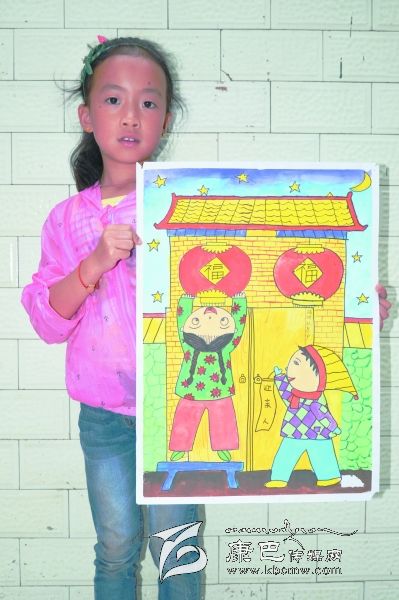 “我和弟弟迎親人”是瀘定縣成武小學(xué)二年級(jí)學(xué)生,周靖蕓同學(xué)有感于阿婆家中常有結(jié)對(duì)認(rèn)親干部來走訪關(guān)心而作的畫。據(jù)小朋友自己說:她畫的房子是她阿婆家,掛燈籠的女孩是自己,拿‘迎親人’條幅的是弟弟,畫星星是認(rèn)親干部有時(shí)晚上也會(huì)到她阿婆家。(王可富 攝影報(bào)道)