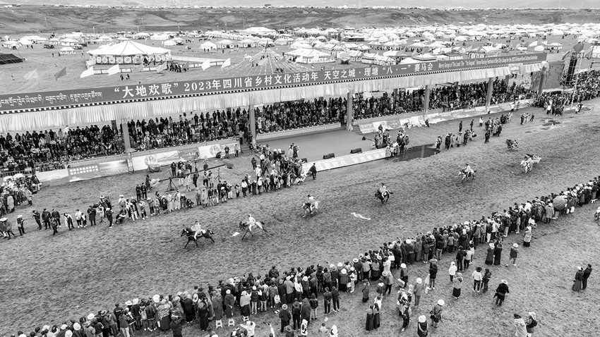 “中國藏族賽馬文化之鄉(xiāng)”“理塘八一傳統(tǒng)賽馬會”是四川涉藏州縣規(guī)模最大的賽馬會,賽馬傳統(tǒng)延續(xù)長達(dá)400余年。“早就聽說過馬背上的理塘,今天終于親眼所見,實(shí)在不虛此行。草原追風(fēng),策馬飛奔,蹄聲如雷,震徹山野,這是多么壯美的理塘萬馬奔騰圖??!多想遠(yuǎn)離城市的喧囂,策馬揚(yáng)鞭,馳騁草原,豪邁瀟灑,勇往直前。以后每一年的理塘賽馬活動,我一定會帶上家人再來這里,因?yàn)槔硖?,可謂是心靈棲息的地方?!痹凇按蟮貧g歌”2023年四川省鄉(xiāng)村文化活動年——天空之城·理塘“八·一”賽馬會上,來自北京的游客石磊被當(dāng)?shù)刭愸R文化吸引,和朋友玩得不亦樂乎。