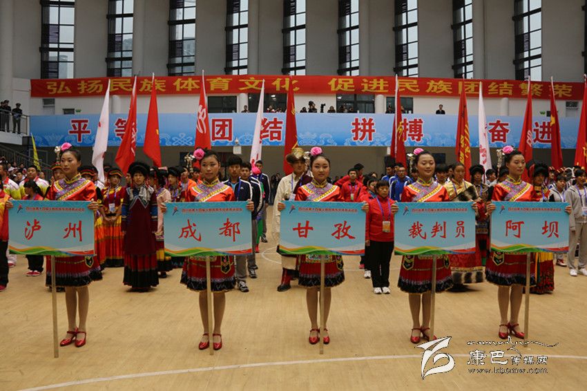 2014年11月4日—9日,四川省第十四屆少數(shù)民族傳統(tǒng)體育運(yùn)動(dòng)會(huì)在宜賓市隆重舉行。在此次民運(yùn)會(huì)上,由138人組成的甘孜州代表團(tuán)代表112萬(wàn)父老鄉(xiāng)親參加了本屆民運(yùn)會(huì)射弩、民族式摔跤(格、北嘎、且里西、絆跤)、蹴球、押加、珍珠球、高腳競(jìng)速、板鞋競(jìng)速、陀螺、苗族手毽等9個(gè)競(jìng)賽項(xiàng)目和競(jìng)技類、技巧類、綜合類3個(gè)表演項(xiàng)目的比賽。