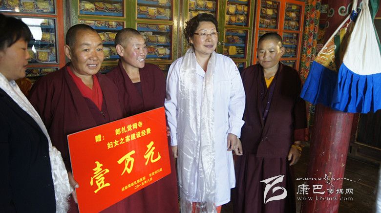 成都蜀都乳腺醫(yī)院向寺廟捐贈了1萬元“婦女之家”建設(shè)經(jīng)費(fèi),并為寺廟23名覺姆做了免費(fèi)彩超檢查。圖為捐贈現(xiàn)場。  (州婦聯(lián) 供稿)