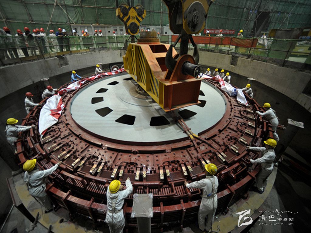10月25日10時(shí)38分,總重量達(dá)700噸的黃金坪水電站1號(hào)20萬(wàn)千瓦機(jī)組轉(zhuǎn)子一次吊裝成功。當(dāng)日上午9時(shí)30分,鞭炮齊鳴,業(yè)主組織設(shè)計(jì)、監(jiān)理、施工單位、廠家代表等在現(xiàn)場(chǎng)舉行了隆重而簡(jiǎn)樸的吊裝儀式,共同見(jiàn)證并指導(dǎo)此節(jié)點(diǎn)目標(biāo)的順利完成。圖為安裝、調(diào)試現(xiàn)場(chǎng)。
