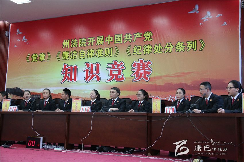本次知識(shí)競(jìng)賽以《黨章》、《廉潔自律準(zhǔn) 則》、《紀(jì)律處分條例》的相關(guān)規(guī)定和黨政法規(guī)知識(shí)為主,采取必答、搶答、觀眾互動(dòng)等形式進(jìn)行,旨在筑牢法院機(jī)關(guān)黨員干部反腐倡廉的思想道德防線。經(jīng)過(guò)激烈的角逐,法院機(jī)關(guān)第三支隊(duì)獲得第一名。