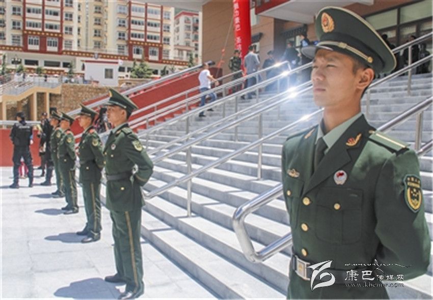 8月10日下午,記者來到康定市新區(qū)民族體育館,在烈日下,公安干警和武警官兵筆挺站立,守護著演職人員和觀眾的安全。